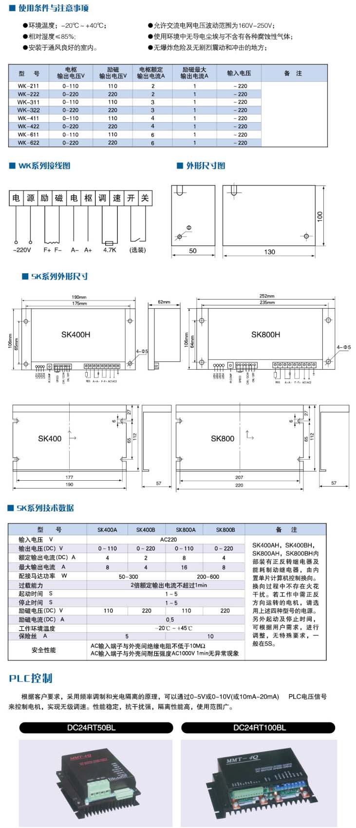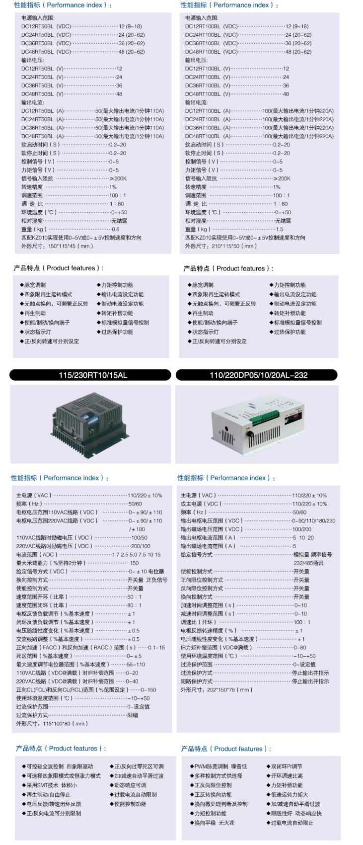 直流電機控制器是采用數字控制調速技術和專用器件,研制生產的高精度電子調速配置。具有結構簡單、體積小、重量輕等優點,可用于SZ系列、ZYT系列、Z2系列功率為幾十瓦~幾千瓦的直流電動機的無級調速。具有多重保護功能,穩定可靠。完全可兼容同類產品。